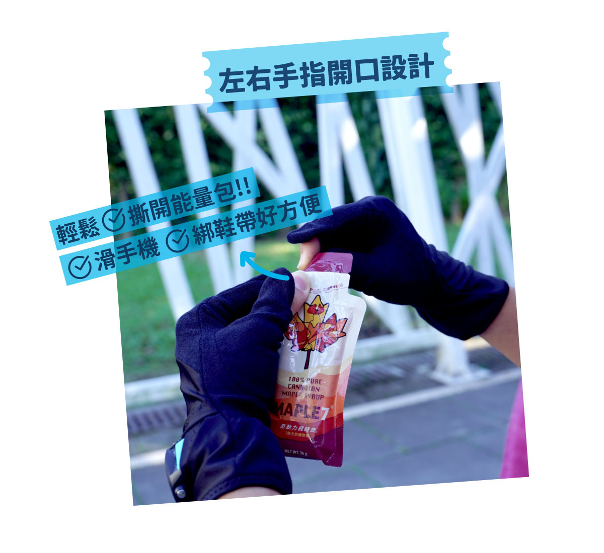 ⚡左右手指露出方便撕開能量膠、滑手機、綁鞋帶
