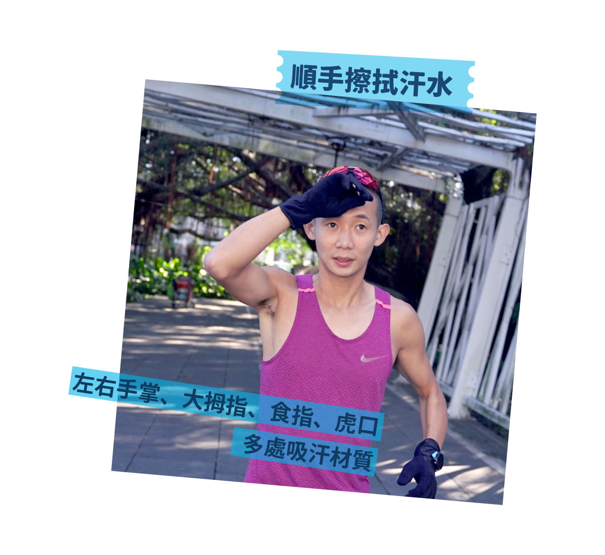 ⚡左右手掌、大拇趾、食指、虎口處吸汗材質,順手擦拭你的汗