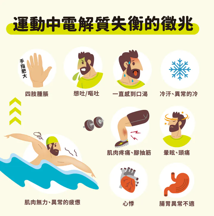 五個重要維持人類運動機能的元素:鈉、鉀、鎂、鈣、氯缺一不可,缺少時將影響其運動表現,甚至可能導致嚴重的副作用。一般人一公升的汗水大約含1000毫克的鈉,而運動飲品每公升僅含440毫克的鈉,甚至更少。對運動員而言,應攝取足夠的五種電解質以維持續戰力,選用 SaltStick 電解質膠囊不僅方便攜帶,且易被身體吸收。